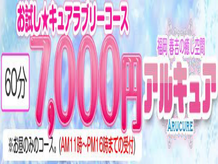 中央区春吉にルーム完備の【アルキュア】です。 可愛い★美しいセラピストが御客様をお出迎えいたします! マッサージはみなさん経験者で歴も長い人は10年(^0_0^) ドシドシ新人さんが入店予定です。 皆様のお電話お待ちしています(*^。^*)