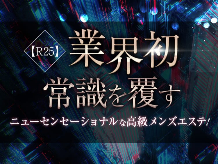 今までのメンズエステの常識を覆す、ニューセンセーショナルなメンズエステ! 【R25】選ばれた紳士だけが集い、光と音が織りなす幻想的な空間で、 洗練されたセラピストによる神秘的で官能的なマッサージをご堪能いただけます。