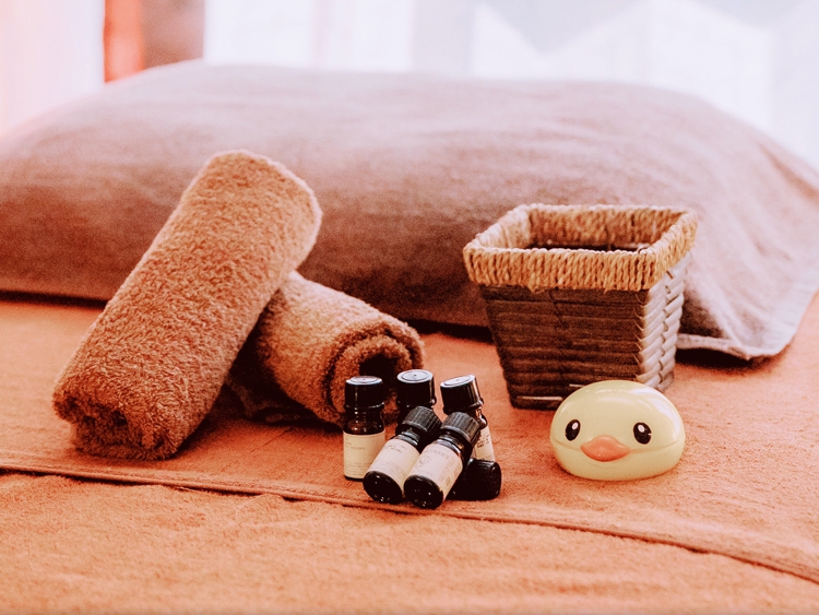 - 2人のセラピストが施術します。ツボを押しながら全身ほぐしてからアロマトリートメントの上にリ