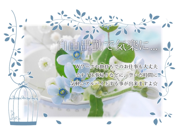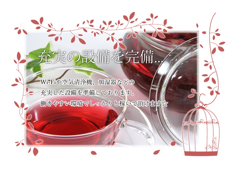 | 待遇 | ・未経験の方でも専属女性トレーナーによる無料の研修制度も御座いますのでご安心下さい。 ・Wワークや子育て中の方も大歓迎!他店での経験者の方、もちろん給与等優遇させて頂きます。 高待遇を準備しております☆ ・Wi-Fi全室完備 ・交通費支給 ・面接交通費支給 ・個別個室待機 ・最低保証制度 ・制服無料貸与 ・自由出勤制度 ・無料研修制度(女性講師) ・Wワーク、掛持ち可能 ・未経験の方、大歓迎 ・経験者優遇制度有 ・日払い制(週払い可能) ・指名バックボーナス有 ・短期間アルバイト可能 ・マンション寮完備 ・宿泊可能 ・マイカー通勤可能 ・帰りの送迎制度有 ・ノルマや罰金などの、引かれ物は一切無し |